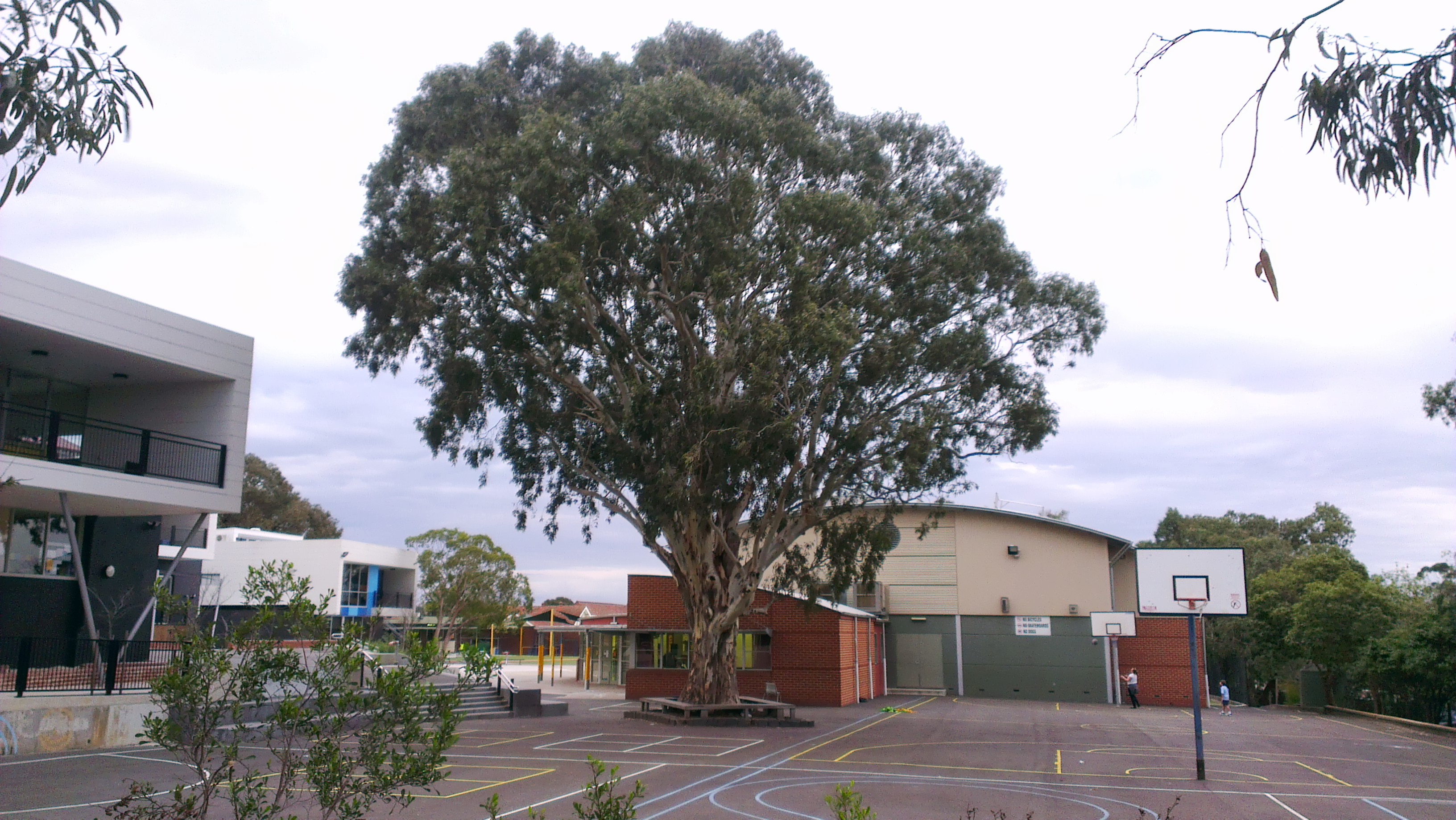 On the other side of the school there’s a mosaic that features local landmarks like the train-line and the creek. Along the top, holding it all in its generous embrace are the boughs of the Grandmother Gum. So perhaps I am not alone, other people honour her too. The school grounds are radically different than the days of my childhood but she is untouched.